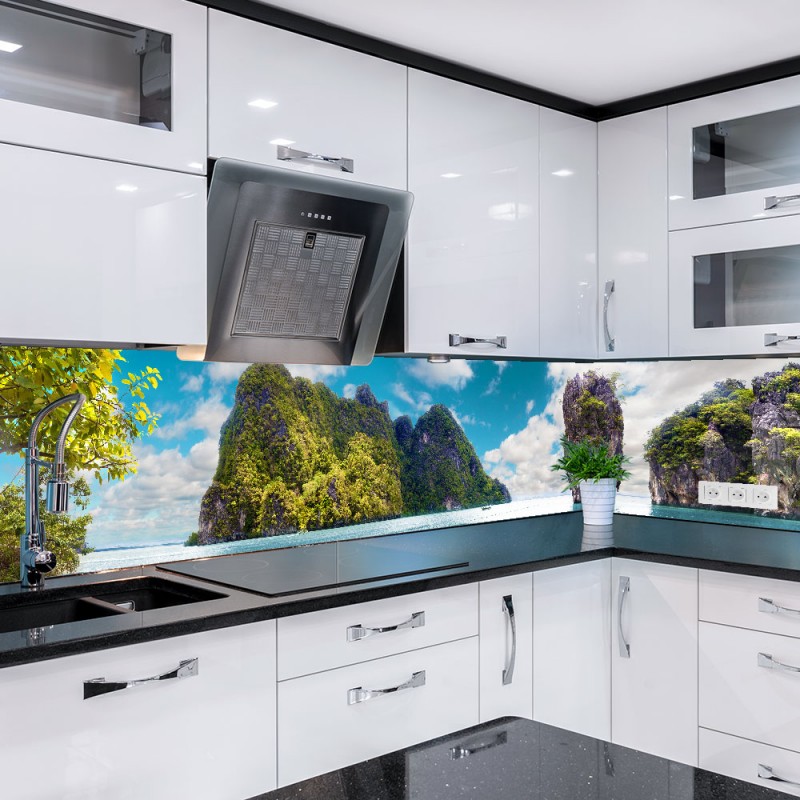 Cette crédence plus vraie que nature vous emmènera voyager dans les eaux paradisiaques thaïlandaises.