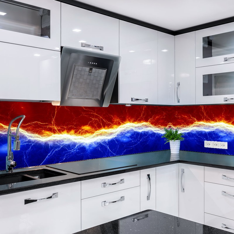 Crédence en verre feuilleté - trempé épaisseur 8.5 mm avec l’inclusion de votre motif entre deux verres sécurit de 4 mm.