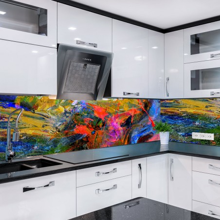 Crédence en verre feuilleté - trempé épaisseur 8.5 mm avec l’inclusion de votre motif entre deux verres sécurit de 4 mm.