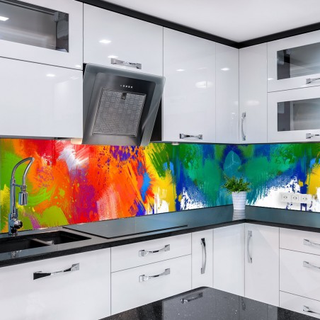 Crédence en verre feuilleté - trempé épaisseur 8.5 mm avec l’inclusion de votre motif entre deux verres sécurit de 4 mm.
