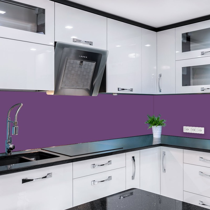Crédence sur mesure couleur Violet Lilas RAL 4005 en verre trempé de 6 mm d'épaisseur.
