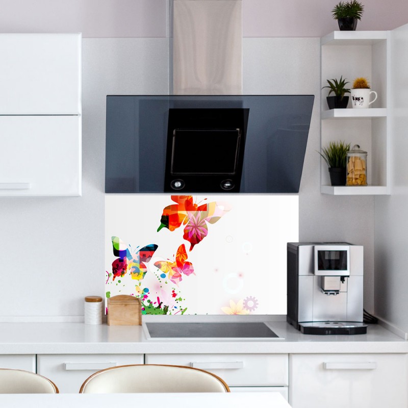 Crédence en verre feuilleté - trempé épaisseur 8.5 mm avec l’inclusion de votre motif entre deux verres sécurit de 4 mm.