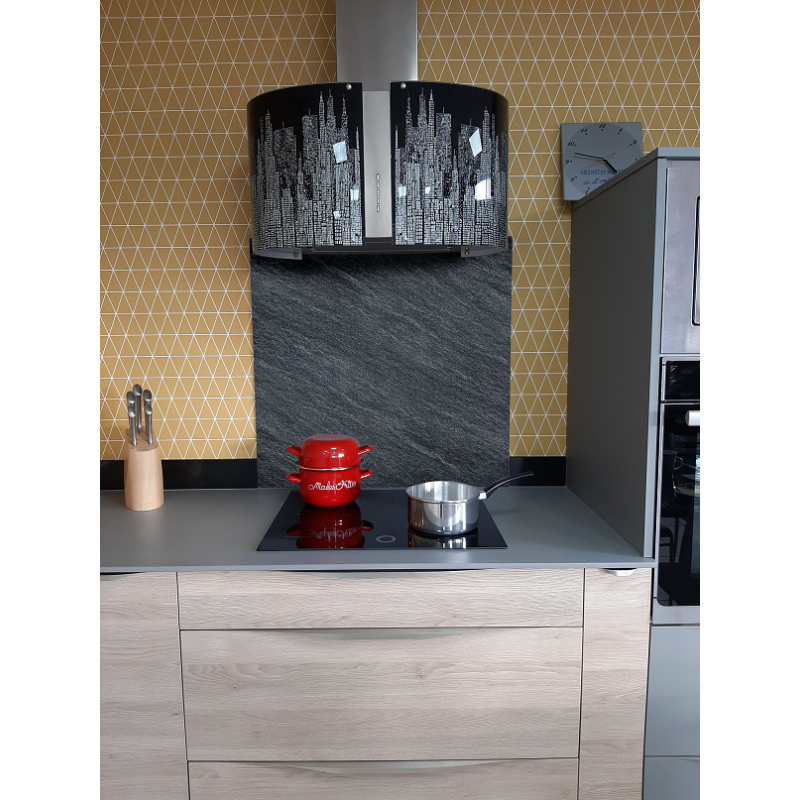 Crédence en verre feuilleté - trempé épaisseur 8.5 mm avec l’inclusion de votre motif entre deux verres sécurit de 4 mm.